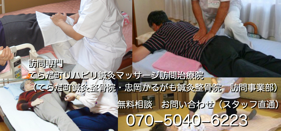 「以前、通院していた通院していた整骨院から《往診治療しています》のお手紙をいただき保険が使える訪問治療があるということを知りました。私は腰と膝の痛みが強く、始めの頃は毎日来てもらっていましたが、今では痛みもかなり楽になり週2回治療してもらってます。近所の友人にも教えてあげたりして自信をもって紹介できる先生です。値段も安いし、身体も楽になるし、本当に助けられています。」