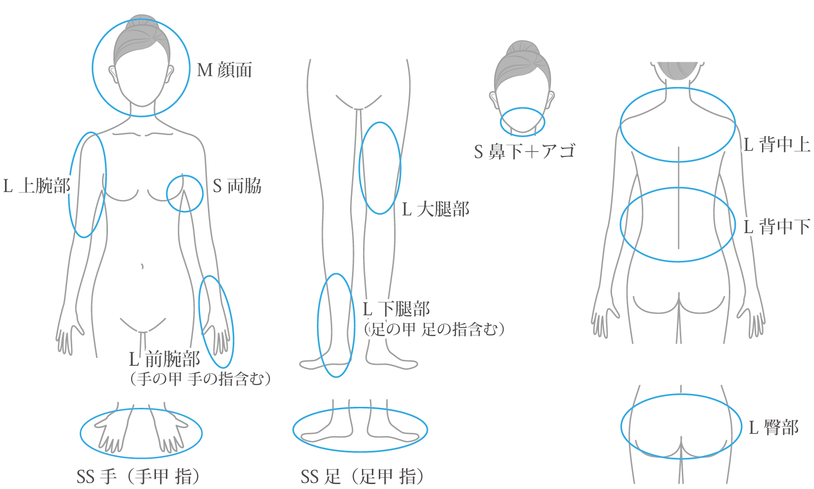 全身(両脇 膝下 肘下 背中上下)